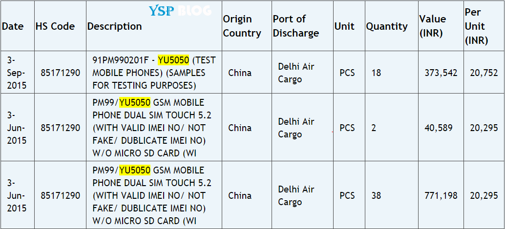 Given the massive specifications of the device the price will be higher than all the previous YU devices and quite possibly higher than all three Yureka, Yuphoria, and Yureka Plus combined. The data of the imported device for testing gives us a rough idea about the price of YU5050. The latest import data has the price of ₹20,752 so expect the price to be in the range of ₹25,000 which puts it in the direct competition with devices like OnePus 2, and the upcoming Moto X Play. Though given the history of competitive pricing from YU don't be surprised if the device is priced at ₹21,000 approx.